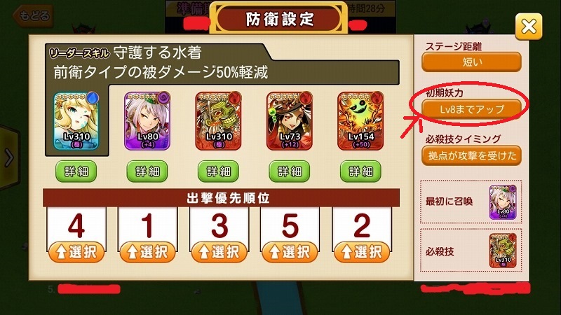 ギルド戦の防衛の妖力は一番最初に設定したLvまで上げてから妖怪が出てくる仕組みです。