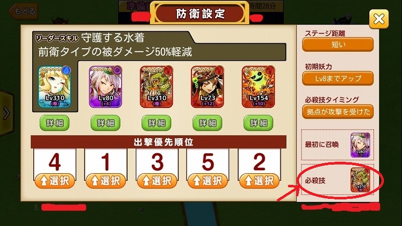 選択した妖怪の中から必殺技を1つ選びます。必殺技は1つしか発動する事ができません。