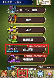 能力開放はモンスターを強くしていくメインの方法の一つです。