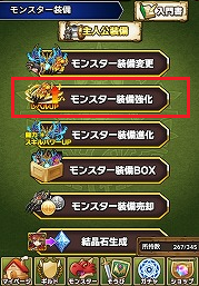 モンスター装備の画面で「モンスター装備強化」を選択します。