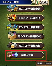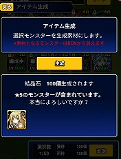 金剛石1個で結晶石200個を生成できます。※神獣1体、または装備品1個で結晶石100個。