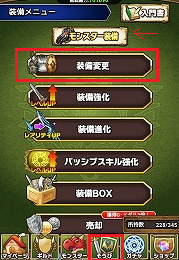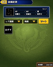 ※ちなみに矢印の「モンスター装備」のボタンを押すとモンスター用の装備の画面に変わります。